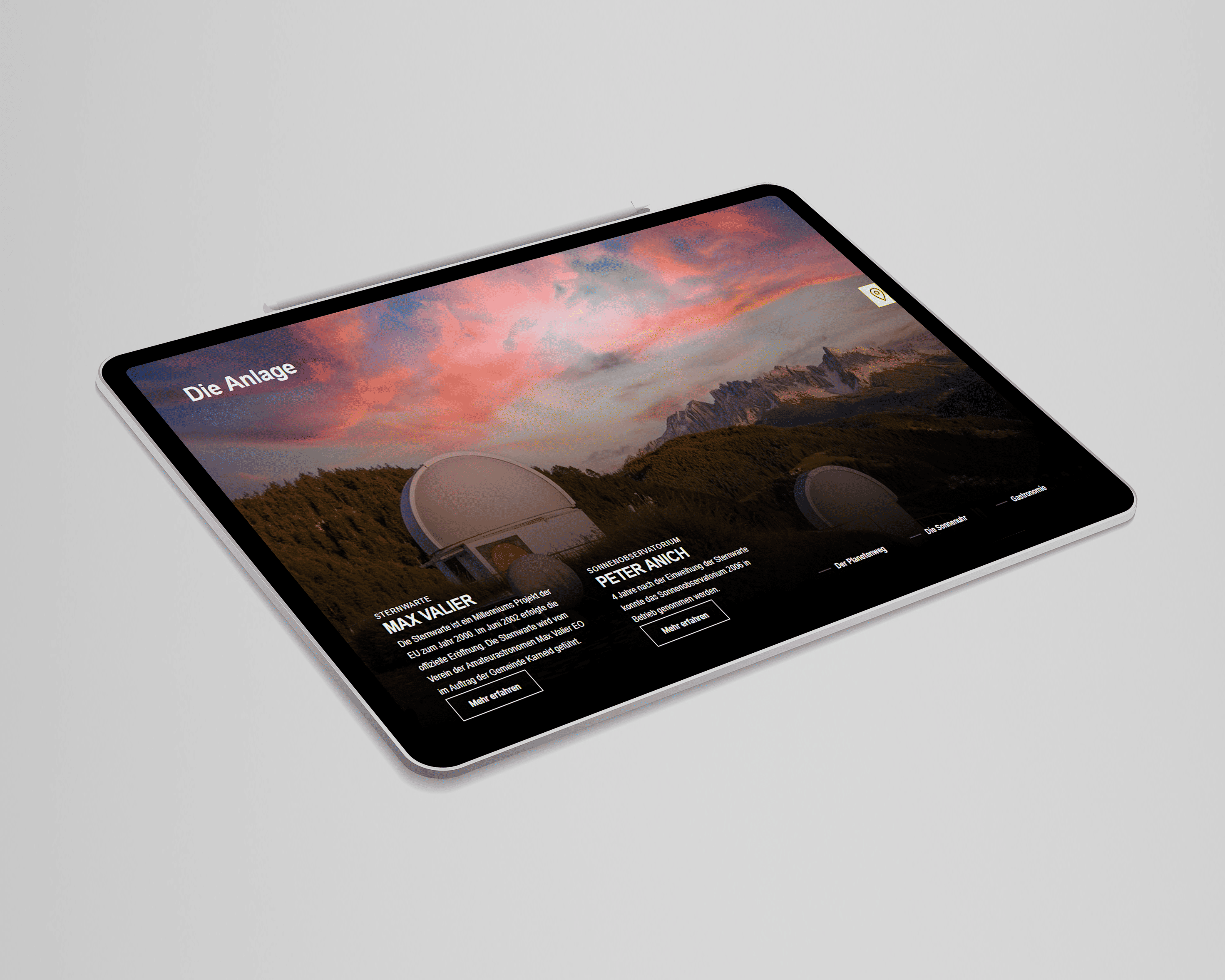 Die Sternwarte wird vom Verein der Amateurastronomen Max Valier EO im Auftrag der Gemeinde Karneid geführt. Der Verein organisiert ganzjährig Führungen für Interessierte der Astronomie. Auch wir durften uns das Planetarium in Gummer anschauen, damit wir uns bestens vorbereiten konnten die Webseite zu designen.